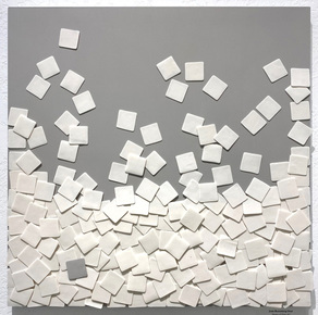 porcelain on wood, panel and string, 16 x 16 x 4 inches, $3000